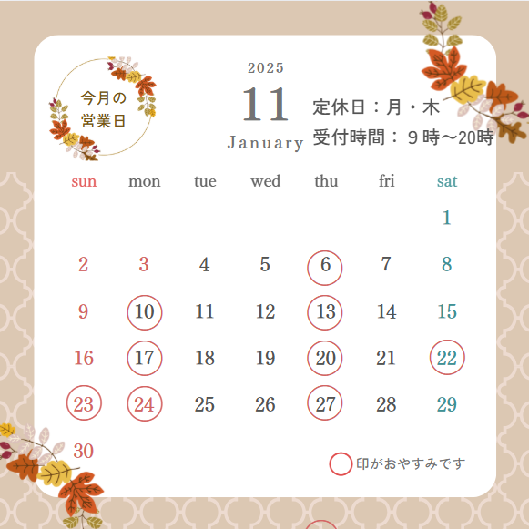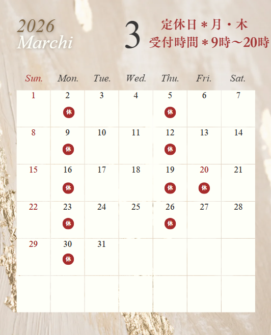 当院は土日祝日も診療しております。平日はお仕事で帰りが遅い方や、家事・育児でお忙しい方も是非ご利用ください。(不定休のため休診の場合もあります)